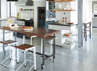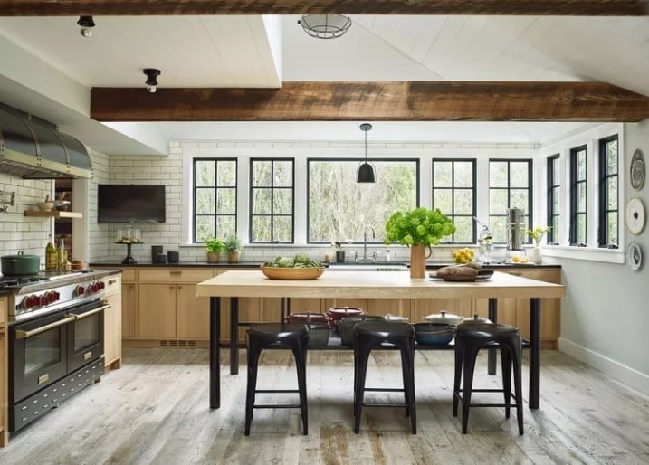 Industrial kitchens are a low-maintenance style that looks and feels large and unpolished. The inspiration comes from industrial spaces, like factories and warehouses.