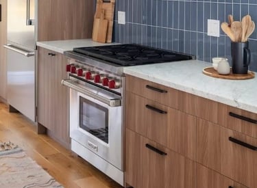 Rooted in modern and Scandinavian styles, the organic kitchen is bright, clean, and minimal.