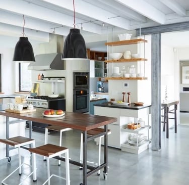 Industrial kitchens are a low-maintenance style that looks and feels large and unpolished. The inspiration comes from industrial spaces, like factories and warehouses.