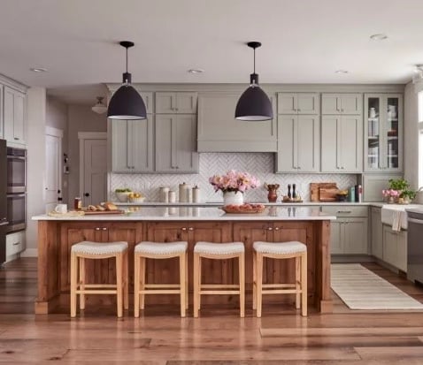 Transitional kitchens combine traditional and modern styles for a look that is simple and relaxing. These kitchens are not as formal as traditional styles or as sleek as modern kitchens. Transitional design elements are currently very similar to contemporary style, but these kitchens aim for balance rather than contrast. While contrast in color and shapes is part of the aesthetic, it’s less dramatic than in a contemporary kitchen.